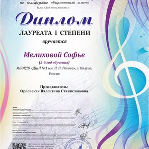 Поздравляем с отличными результатами участия в Международной тематической олимпиаде по сольфеджио "Скрипичный ключ"
