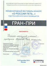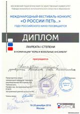 С 16 по 20 декабря в Москве состоялся Международный фестиваль-конкурс « О России петь…», посвященный Году Российского кино, организатор - МПГУ Кафедра музыкально-исполнительского искусства в образовании. Два коллектива МБОУДО «ДШИ №1 им. Н. П. Ракова» : капелла мальчиков и юношей «Ветер» и ансамбль юношей «Надежда» (руководитель Полежаева О. В. и концертмейстер Радошнова Н. С.), приняли участие в конкурсной программе, получив высшие награды: Гран-при (капелла «Ветер») и Лауреат I степени (ансамбль «Надежда»).