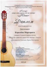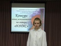 26 марта в ДШИ №7 прошёл межшкольный конкурс юных исполнителей «ЮНИС» в котором приняли участие учащиеся всех школ искусств г. Калуги. Члены жюри: Пушкаренко Евгений Анатольевич - российский гитарист, лауреат международных конкурсов, Чайкина Ж.В. –преподаватель ДШИ №8, директор детского фестиваля «Мир гитары» и Безлепкина Н.Р. – заместитель директора по учебно-воспитательной работе ДШИ №7, преподаватель по классу гитары.