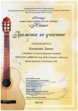 Кадимян Давид - грамота за участие (преп. Самохина Л.В.),
