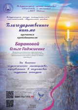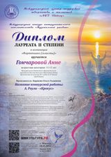 Поздравляем Гончарову Анну и преподавателя Баранову Ольгу Гаджиевну с успешным участием в Международном конкурсе инструментального исполнительства "Музыкальный рассвет"! Желаем новых творческих побед!