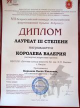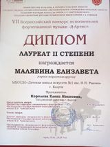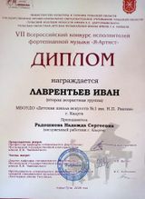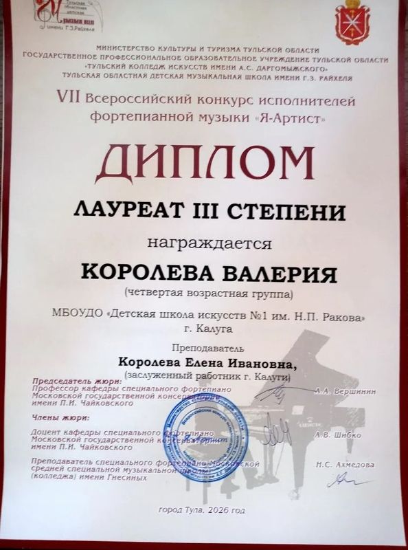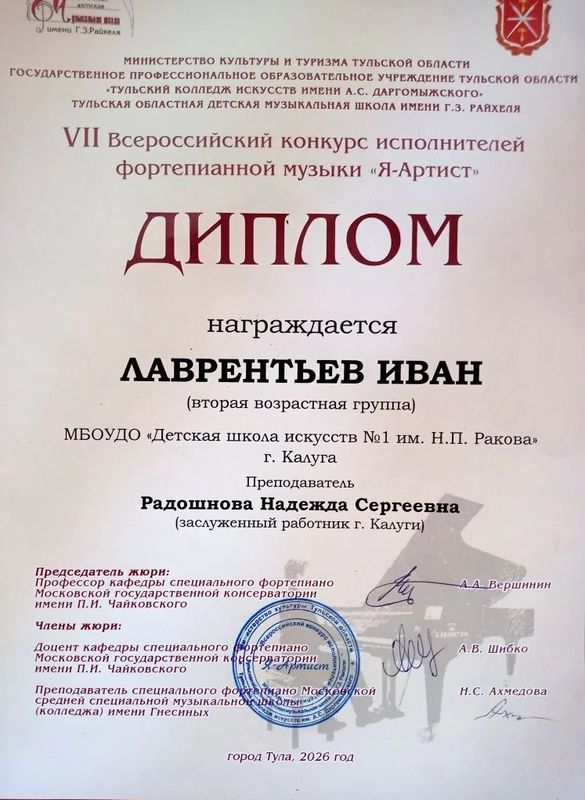 Поздравляем с успешным участием в VII Всероссийском конкурсе исполнителей фортепианной музыки "Я-Артист" Елизавету Малявину, Валерию Королеву, Ивана Лаврентьева и преподавателей Елену Ивановну Королеву и Надежду Сергеевну Радошнову!